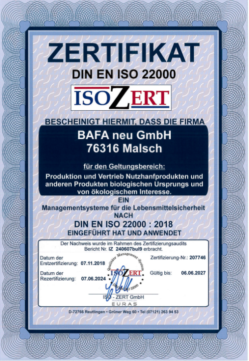 ISO 22000 Zertifikat BAFA Neu GmbH PDF