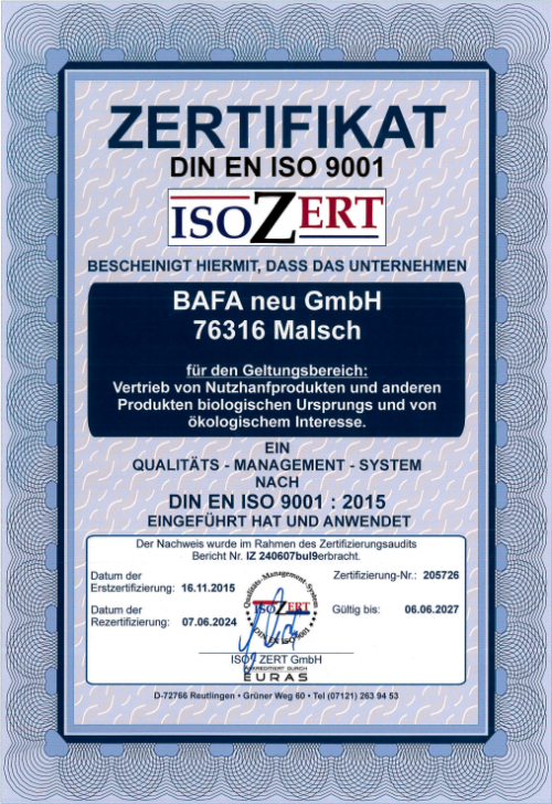 ISO 9001 Zertifikat BAFA Neu GmbH